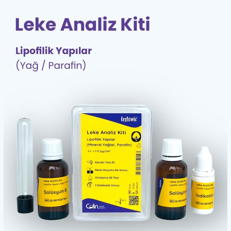 Leke Analiz Kiti, iplik ve kumaş yüzeylerinde görülen lekelerin lipofilik (yağ bazlı) karakterde olup olmadığını belirlemek için tasarlanmıştır. Bu özel set, parafin, mineral yağlar, örgü makinelerinde kullanılan yağlayıcılar ve benzeri maddelerin varlığını tespit etmeye yardımcı olur.
