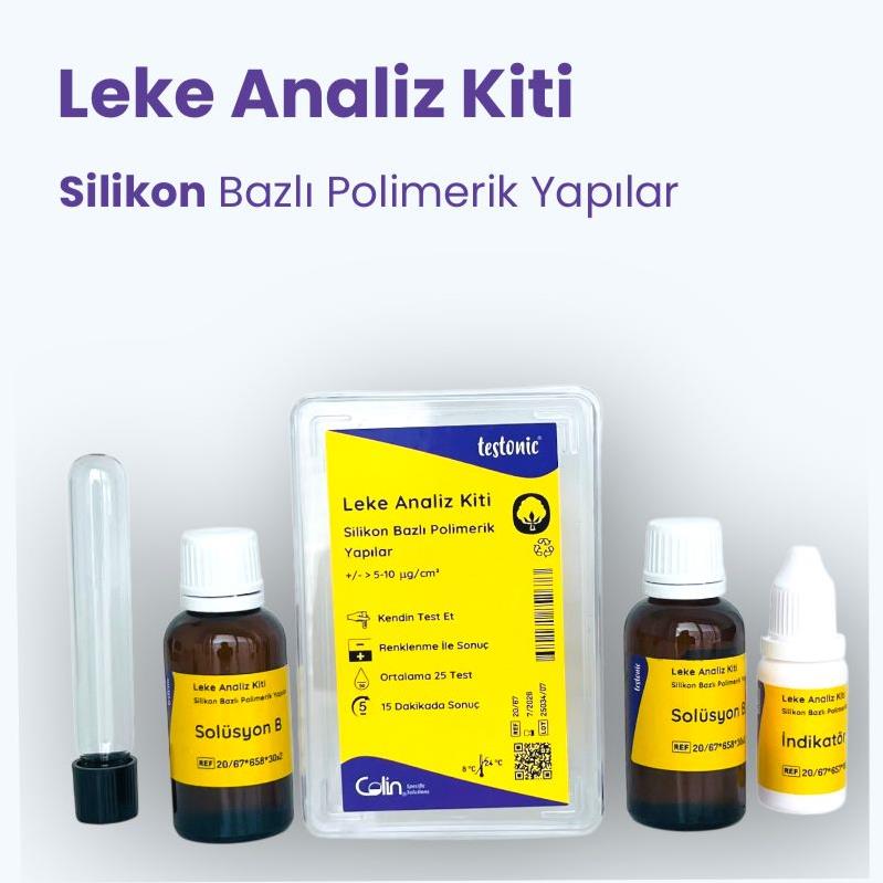 Leke Analiz Kiti, kumaş yüzeyinde görsel olarak tespit edilen lekelerin, silikon bazlı polimerik yapılardan kaynaklanıp kaynaklanmadığını analiz etmek için tasarlanmıştır. Bu set, özellikle apre, boyama veya yumuşatma işlemleri sonrasında oluşan ve kaynağı bilinmeyen lekelerin silikon içeriğini belirlemede pratik bir çözüm sunar.