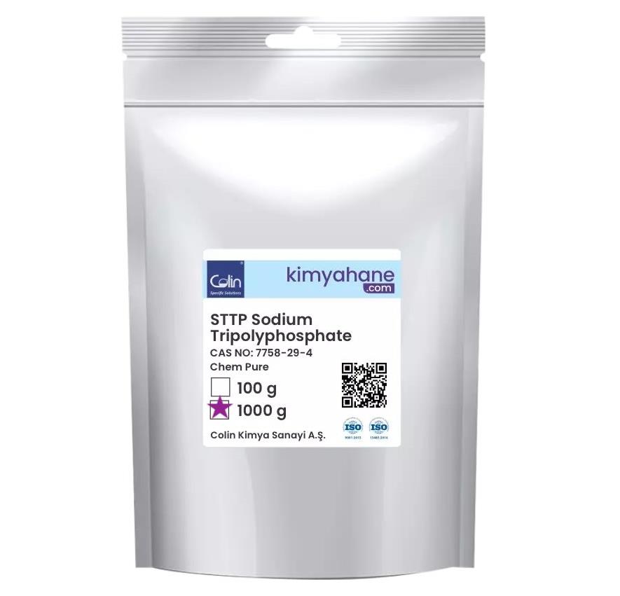 Sodyum Tripolifosfat (STTP), beyaz kristal toz formunda, suda kolayca çözünebilen bir inorganik tuzdur. Polifosfatlar grubuna ait bu bileşik, deterjan, gıda, seramik, tekstil ve su arıtma endüstrilerinde çok yönlü işlevleriyle öne çıkar. Su yumuşatma, emülgatörlük, pH düzenleme, dispersiyon ve plastikleştirme gibi özellikleri sayesinde yaygın kullanıma sahiptir.